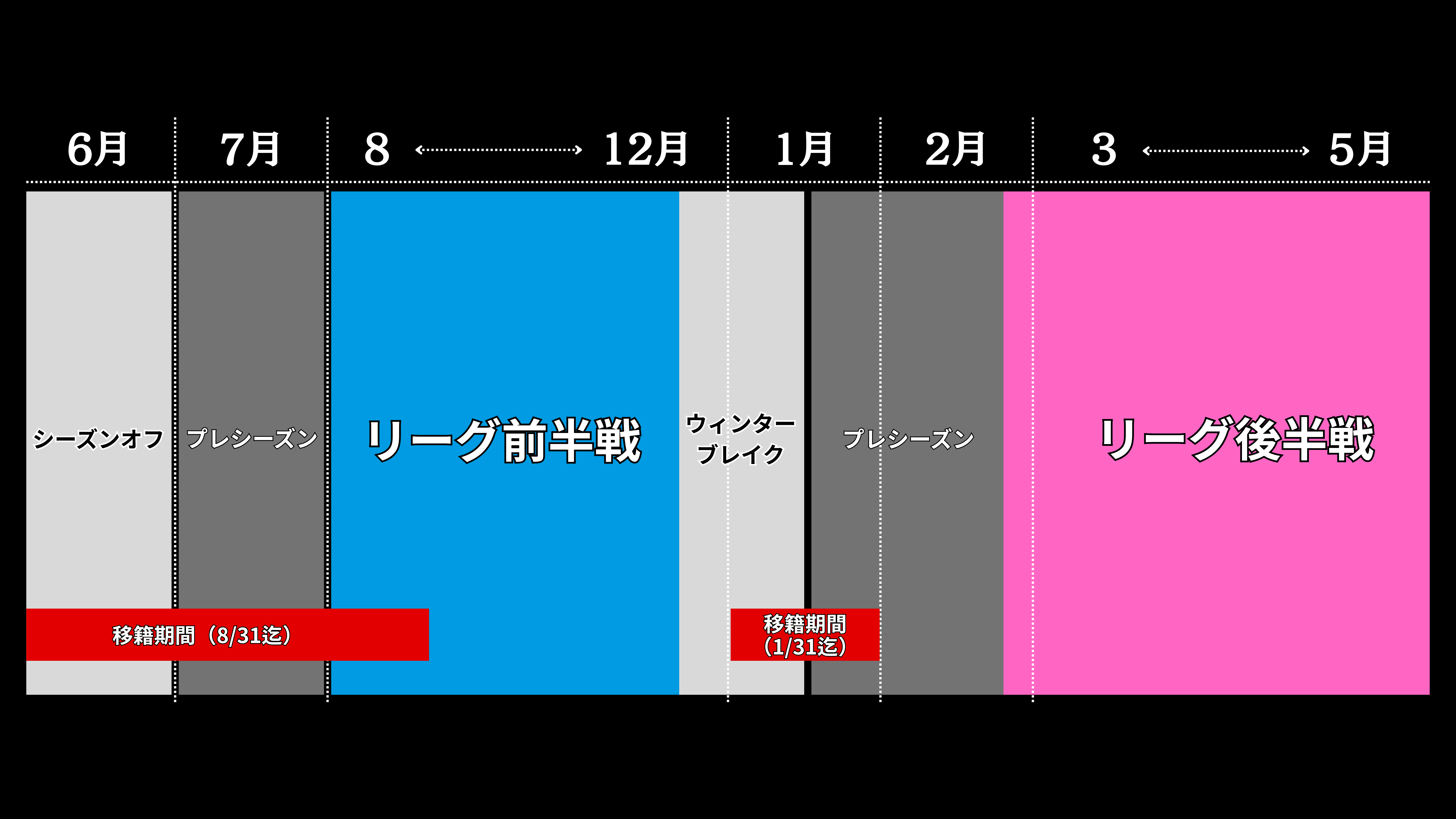 ドイツのシーズンは7月~8月中旬にプレシーズンが始まり、その後にリーグ戦に突入します。12月上旬から約1ケ月間のウィンターブレイクを経て、2月ごろから5~6月まで後期リーグが実施されます。